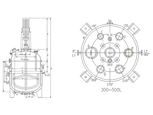 Габаритные размеры эмалированного реактора открытого типа (мм)